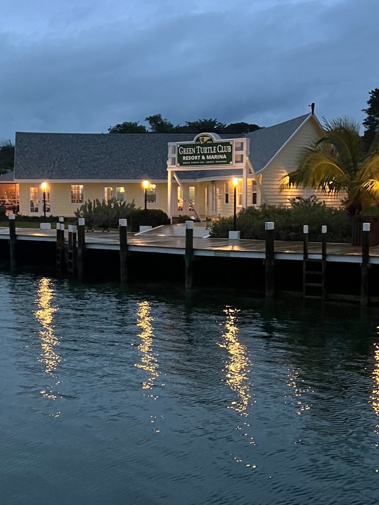 Welcome to the West End. Grand Bahamas Island. We cleared customs quickly – and now onto our first stop; GREEN TURTLE CAY (spelled cay pronounced Key). We are looking forward to getting BB tide down, a couple drinks, dinner and relaxing. Not hard to do, especially when you meet Jane and Jim parked next to us. Their boat is Happy Dayz – Needless to say they are so fun. After several kalik beers and some kind of rum drink. It was a great day and happy to part of this trip.