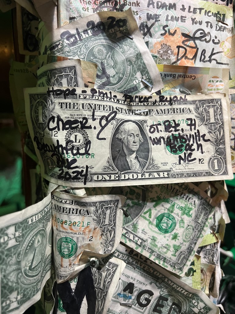- ended with dinner at the Bluff house and a few drinks at the $$$$ dollar bar.