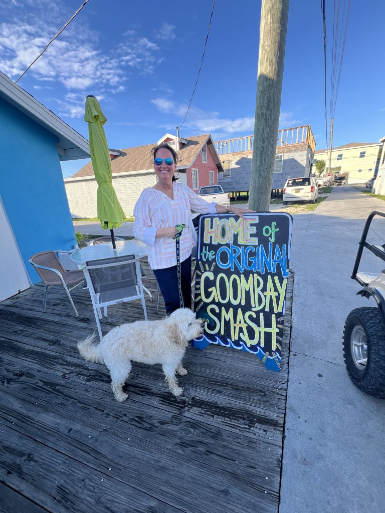 - Everyone and Teddy back in the golf cart to Blue Bee Bar with Emily Cooper aka, Miss Emily created the Original Goombay smash.